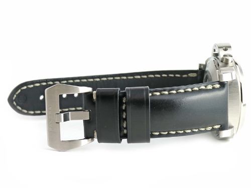 パネライのルミノールクロノグラフは黒の文字盤とベルト、リューズを覆ったガードなど力強いインパクトのあるデザインが魅力です。