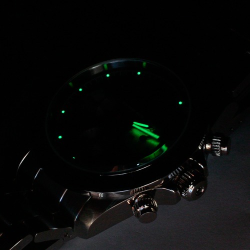 評価:普通のクロノグラフだと手首にボタンとかりゅうずが当たりそうなので、こちらの時計をチョイスしました。