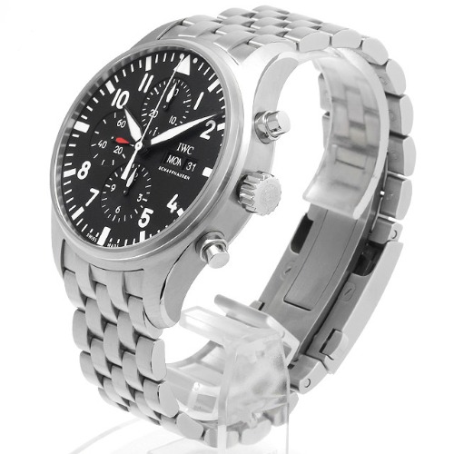 IWCのスピットファイアはミリタリー感の強い腕時計が多いですが、このクロノグラフモデルはスチールベルトがエレガントに見せてくれます。