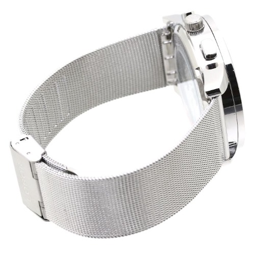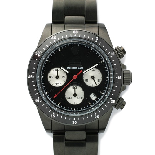 ブラックダイヤルにシルバーのケースとベルト、白の針とインデックスとモノトーンカラーになっているのが特徴です。