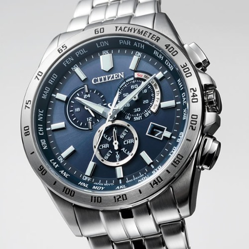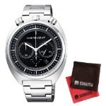 シチズンインディペンデントはやや四角いケースや、ボタン位置が特徴的なクロノグラフ腕時計です。