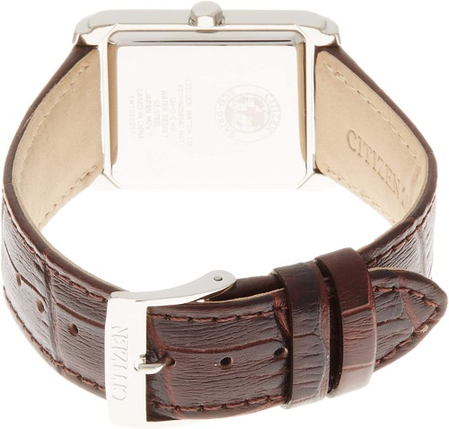 長方形の文字盤に美しく収まった文字は視認性も高く、ベルトはレザーが使用されているので上品で落ち着いた印象を与えるでしょう。
