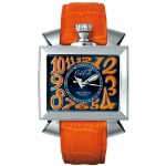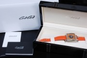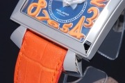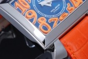 芸能人や著名人からも人気が高いガガミラノの6000.4は、ブルーの文字盤にオレンジの文字が映える目立つ腕時計です。