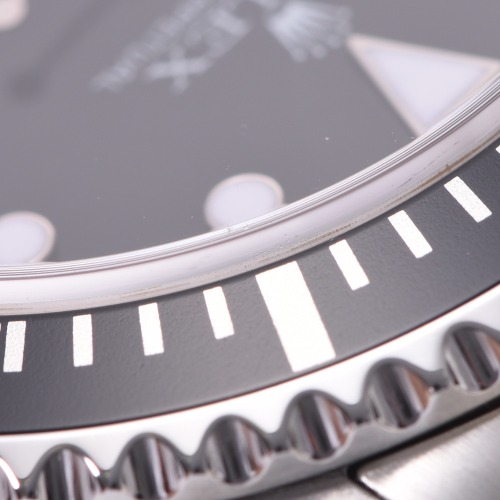 深海などの状況下でも強度なサブマリーナノンデイトの逆回転防止ベゼルは、安全にベゼルを確かに操作ができます。