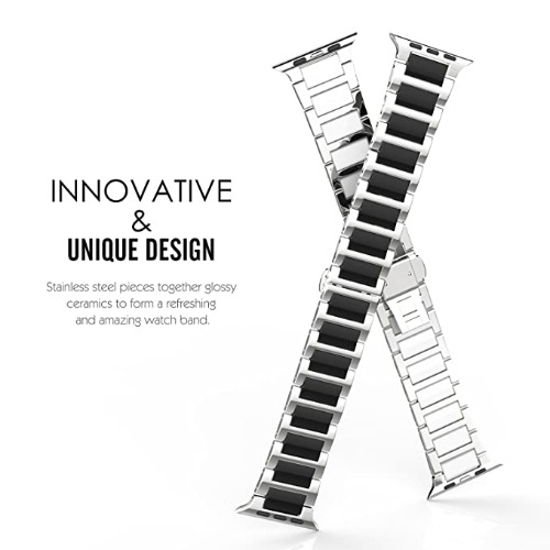 MoKoCompatibleバンド Apple ウォッチ4はブラックとシルバーのツートンでステンレススチール製のAppleWatch用交換ベルトになります。