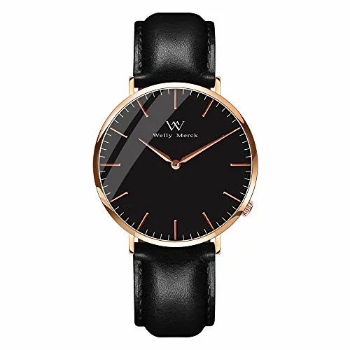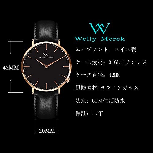 WELLY MERCKは白の文字盤にシルバーの針、黒のベルトとシンプルかつフォーマルなデザインです。