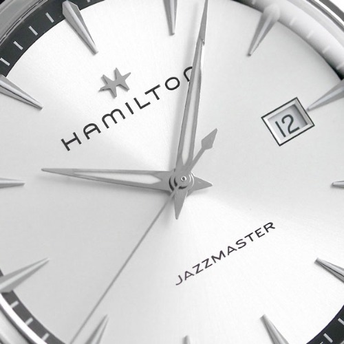 ハミルトンのジャズマスター ジェント H32451751は黒くフチどられた文字盤が印象的な腕時計です。