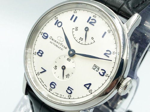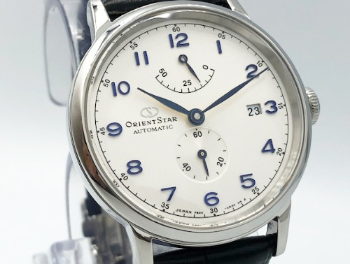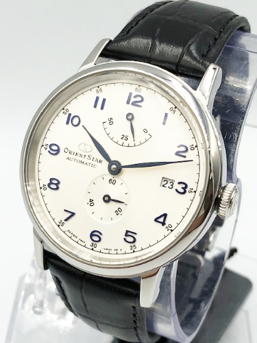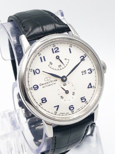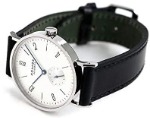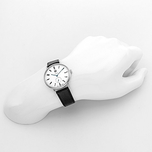 評価:白の文字盤と黒のレザーベルト、日付の小窓もないシンプルなデザインを条件に探していて見つけました。実物は白というよりシルバーに近い色でしたが許容範囲内です。