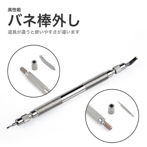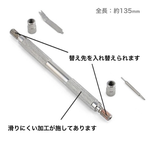 バネ棒に差し込む穴が小さくても大きくても先端を取り替えることが可能なので、様々な腕時計のベルト交換に対応できます。