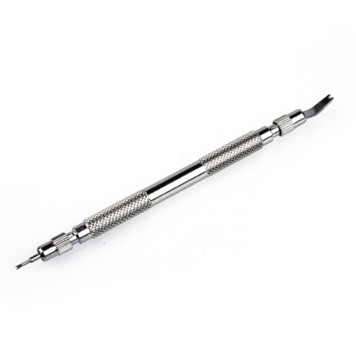 明工舎のバネ棒外しは片方がI字型で反対側がY字型という1本で2つの性能を持つバネ棒外しになります。
