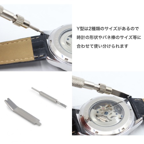 この商品1つでY字型とI字型がついているので、どのタイプの時計でもベルト交換が可能です。