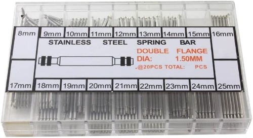 紹介しているバネ棒は8mm~25mmまでのサイズが揃っており、幅広く腕時計に対応できます。