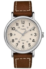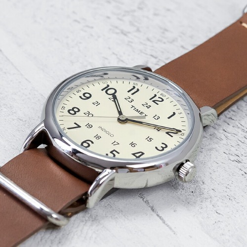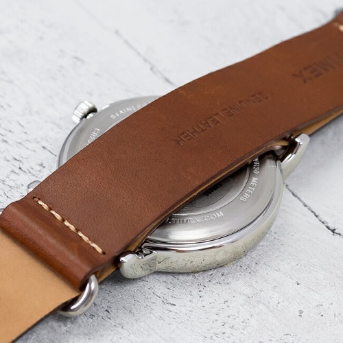 タイメックスウィークエンダーには、レザーベルトのモデルもあり、ミリタリーウォッチでありながら、洗練された印象になっています。
