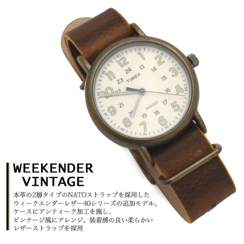 タイメックスウィークエンダーヴィンテージは、真鍮製のケースがヴィンテージ感を強く漂わせています。