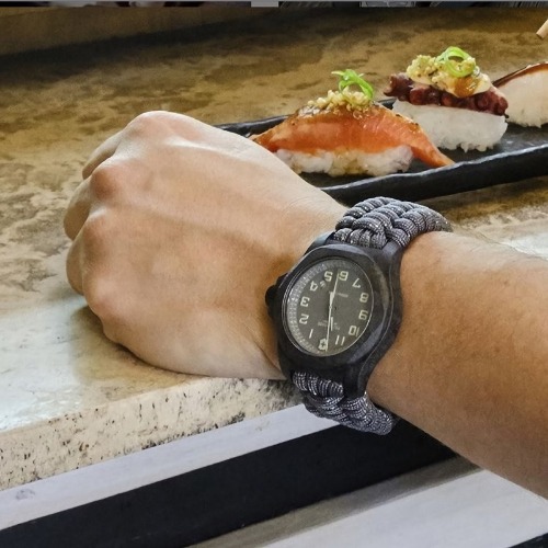 評価:見栄えが良く、時間も非常に正確でパラコードストラップが着けていて心地良いです。少し高価ですが全体的に非常に良くできた時計です。チタンケースなので傷に強くしかも軽量で、つけていることを忘れるくらい軽くできています。