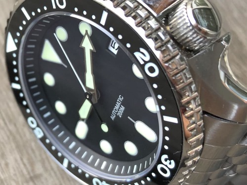 NH36搭載したこちらのダイバーズウォッチは1000mの防水を持つ本格ダイバーズ仕様の腕時計になります。