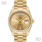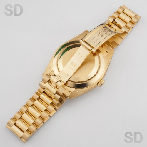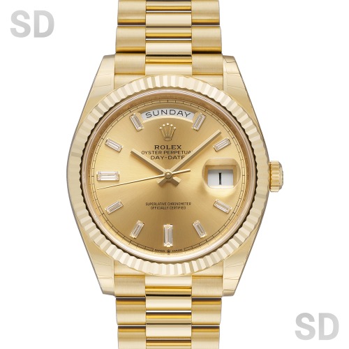 世界中で認知されているロレックスのモデルの中で一番有名なモデル、デイトジャストの素材に贅沢なイエローゴールドを全面に採用した究極のドレスウォッチがデイデイト オイスター40mm、イエローゴールドです。
