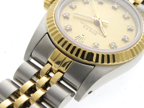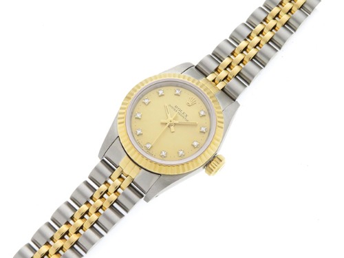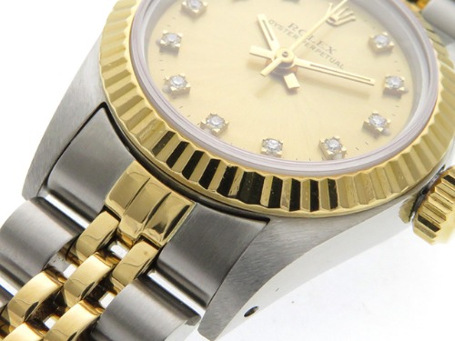 オイスターパーペチュアル 67193Gは王道ともいえるコンビモデルに、11ポイントのダイヤモンドをあしらった豪華なドレスウォッチです。