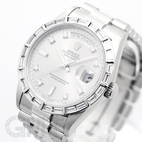 デイデイト ベゼルバケットダイヤ 18366はベゼルにベケットダイヤが敷き詰められ、インデックスの6時、9時位置にもバケットダイヤが合計10ポイントセッテイングされている豪華なモデルです。