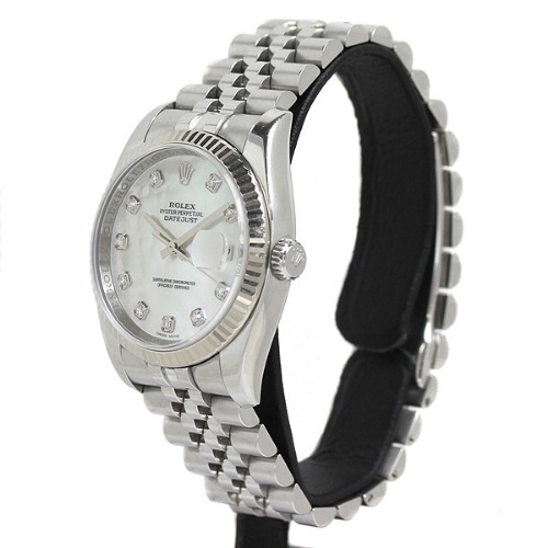 評価:シェル文字盤と10ポイントダイヤが美しく優雅なので、一目で気に入り購入しました。現在まで高級スポーツからパテックなどの4大腕時計、特殊な時計まで一通り愛してきましたが、結果ジーンズにTシャツからスーツまでスッキリと見せるロレックスは安心しますね。