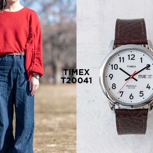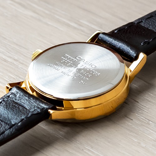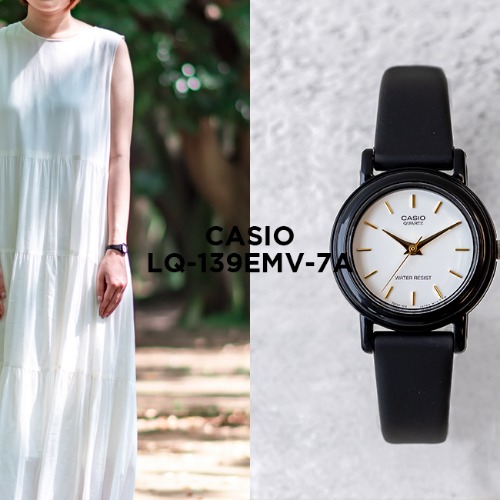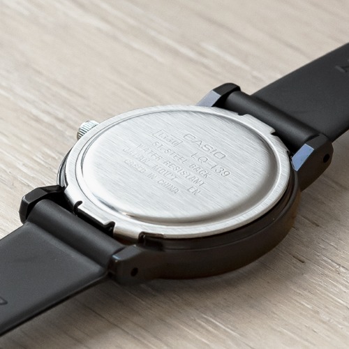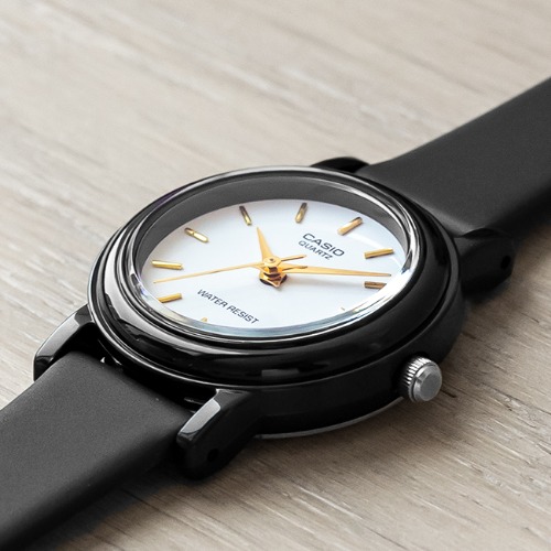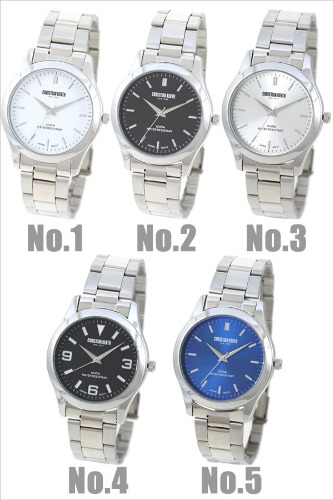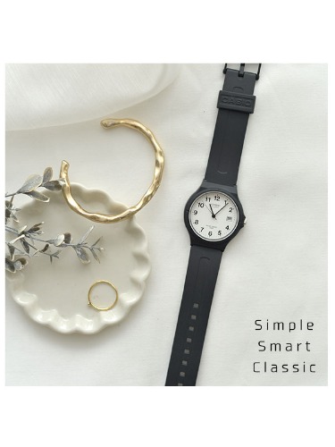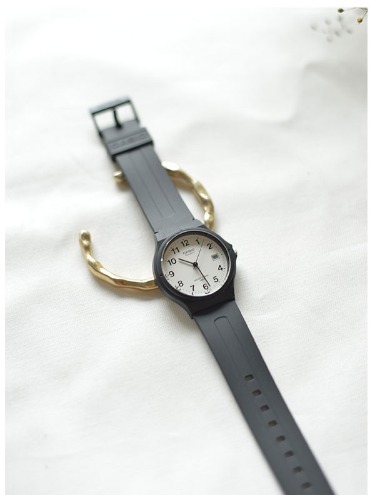 評価:シンプルな白文字盤にアラビア数字、黒ベルトのモデルにしました。3針なので時間を確認するのに十分です。他にはバーインデックスや黒文字盤なども出ているので好みに応じて選べます。チープですが可愛いですよ。
