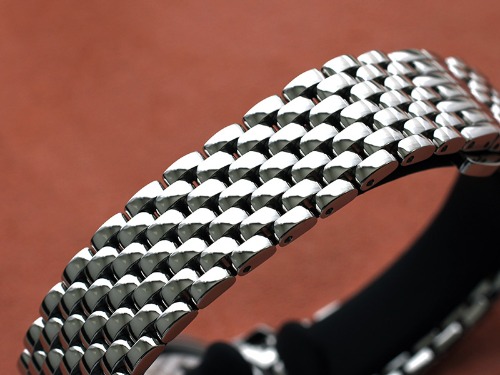 金属の繊維を編み合わせて独特な風合いのベルトに仕上げており、腕に着けたときの感触も滑らかになっていますので、太さや編み方はそれぞれですが、肌触りのよさや手首にしっくりくるのが特徴です。