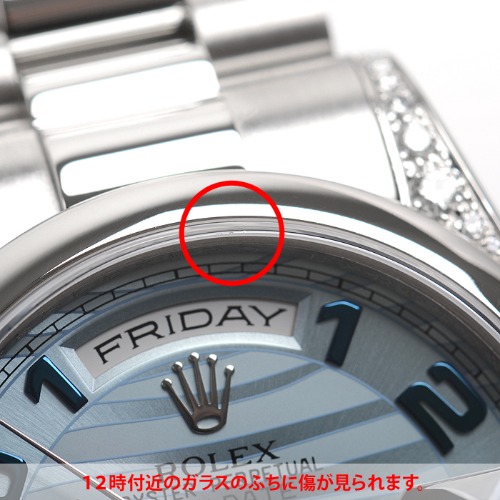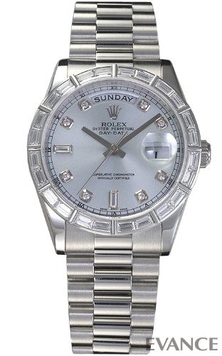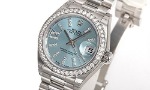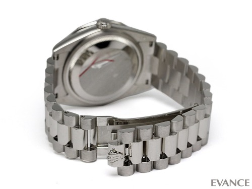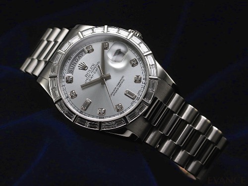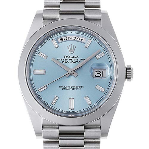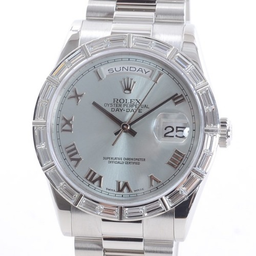 評価:30年前、自分へのご褒美としてデイトジャストを買ったのをきっかけにロレ病になり、ステップアップしてきました。アイスブルー文字盤が好きでデイデイト40にも興味があり見に行ったところこの斜め格子のモデルだけは本当に綺麗でイヤミのないデザインで購入に至りました。