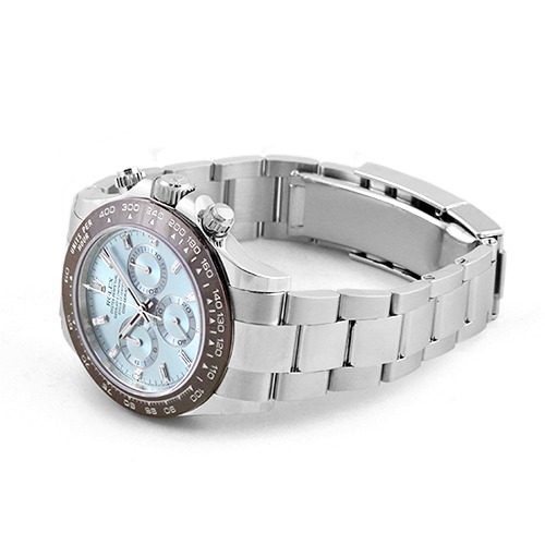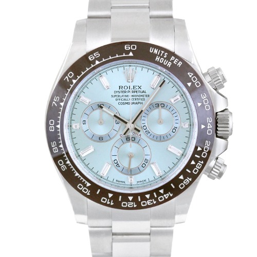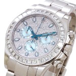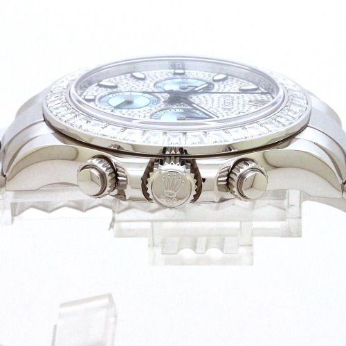アイスブルーのデイトナ116576TBRはデイトジャストの279136RBRと同様ですが、こちらはアフーダイヤがベゼル部分に散りばめられています。