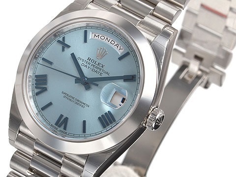 シルバーと水色のカラーデザインがおしゃれな印象を作っているアイスブルーデイデイト40 228206Aも人気です。
