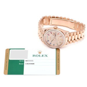 デイデイトの中でも女性人気が高い腕時計が128345RBRです。