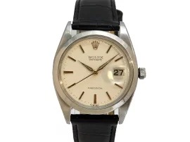 ロレックス「オイスターデイト(6694)」は、ステンレス製のケースに黒革のベルトでアンティーク感がある小ぶりな大きさが特徴的なロレックスの人気モデルの腕時計です。