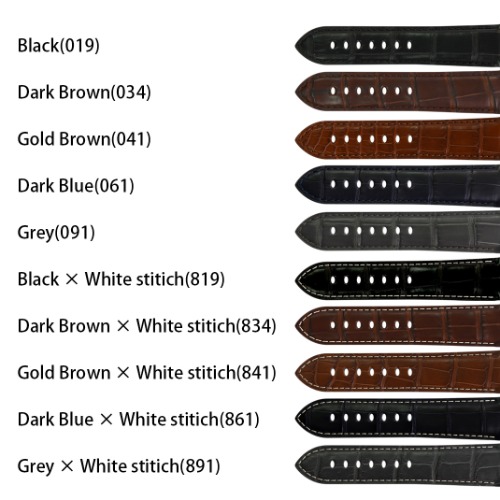 アリゲーターは高い防水性で汗にも強く耐久性も兼ね備えており、ブラック、ブラウン、ダークブルーなどカラーバリエーションは豊富です。