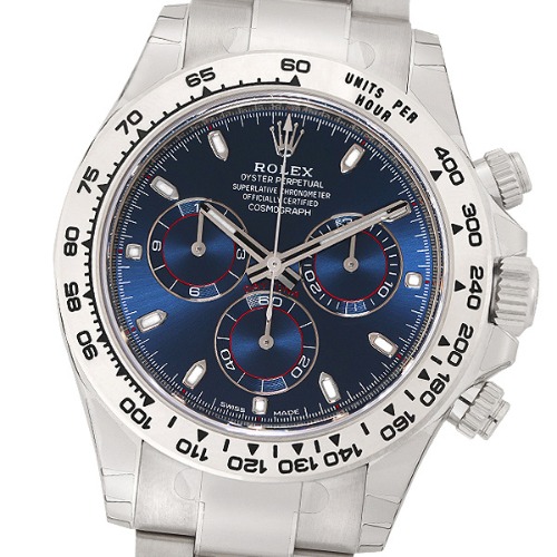 評価:デイトナでも文字盤の色で悩みましたが、実物をみたらやっぱり青がいいですよね!細かい部分までキレイな最高な腕時計です!思い切って買ってよかった。この高級感はデイトナならではといった感じで一生使い込むつもりです。