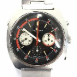 評価:製造年が不明だったが状態がよかったのと、ケースデザインのかっこよさに惹かれて購入。シルバーの時代を感じさせるシャープなダイヤルは現在の時計には無い魅力がある。
